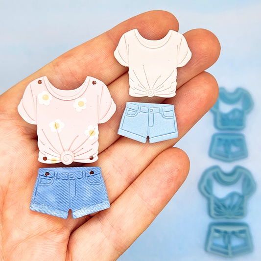 Tied T-Shirt & Jean Shorts Polymer Clay Cutter Set