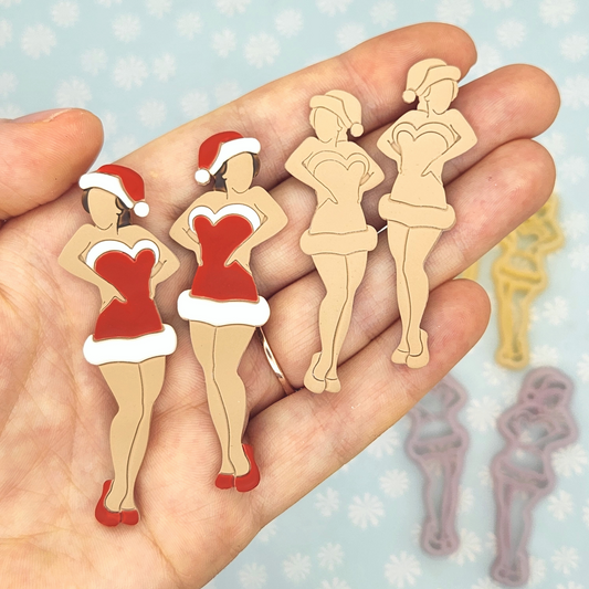 Christmas Pinup Polymer Clay Cutters - Mirrored Pair