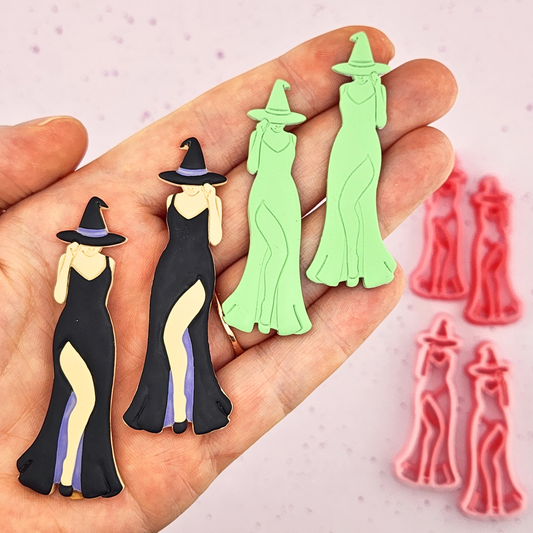 Pinup Witch Polymer Clay Cutters - Mirrored Pair