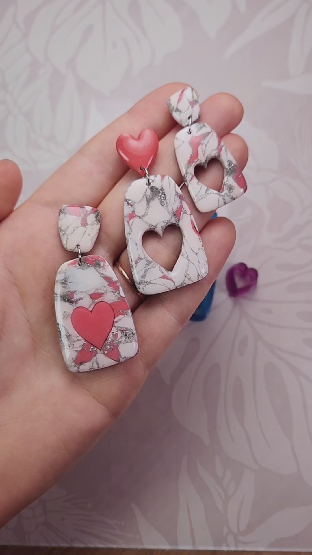 This stud and dangle polymer clay cutter set comes in two styles, a cutout set and an outline set. The cutout set includes three cutters: the stud, the heart cutout dangle, and a heart cutter. The heart works great as an alternative stud or for filling the cutout heart. The outline set comes with two cutters: a stud and dangle. There are two sizes available, 3 cm and 4 cm. Sizes are based on the height of the dangle cutter.