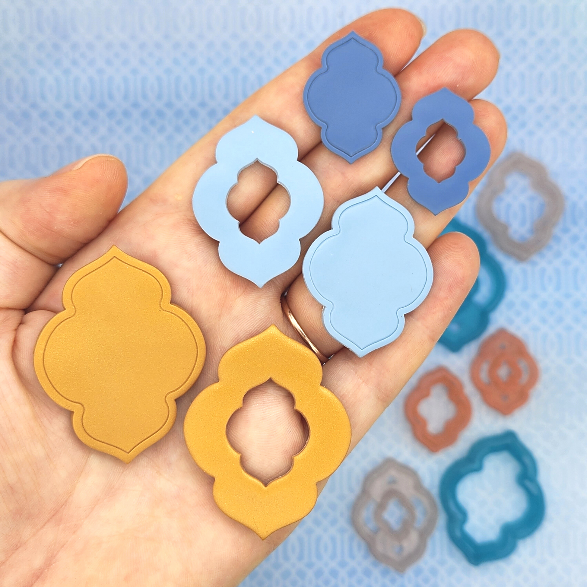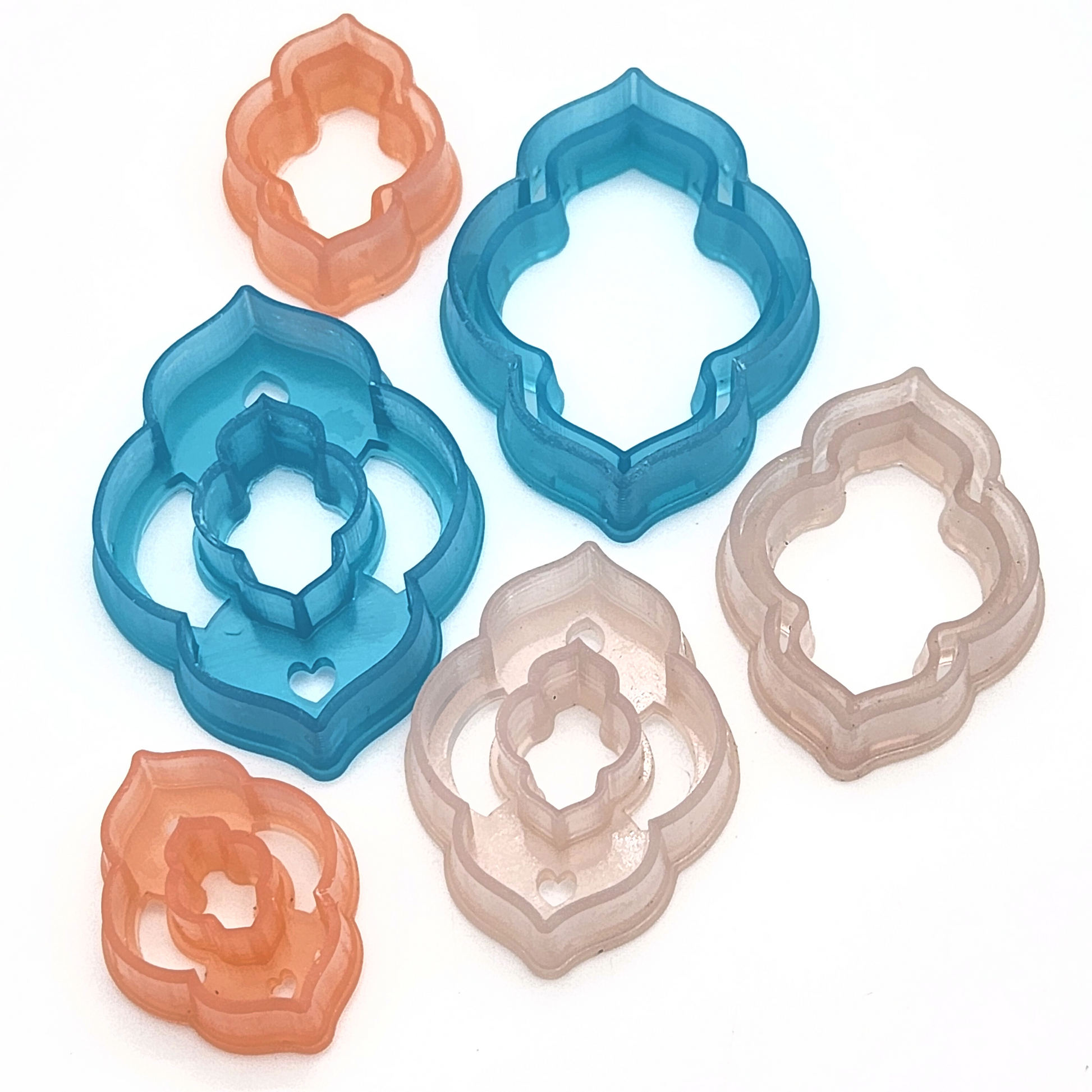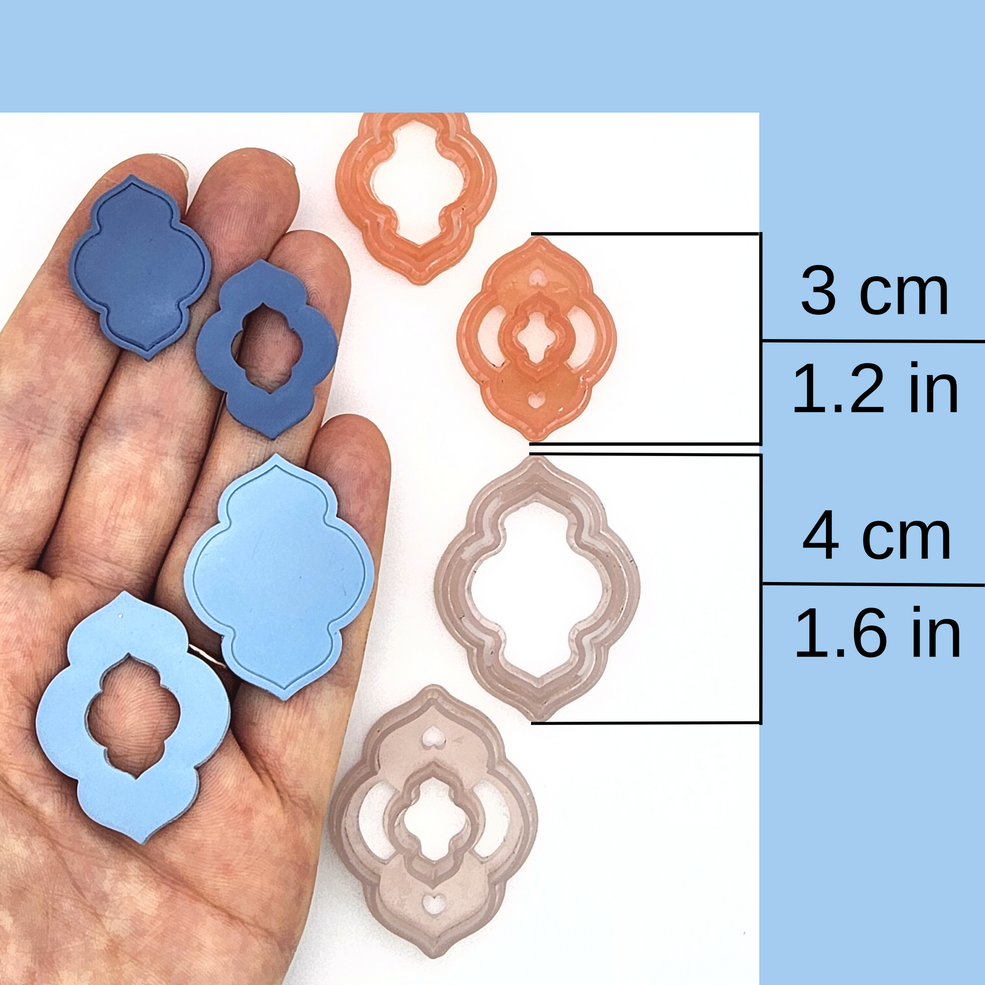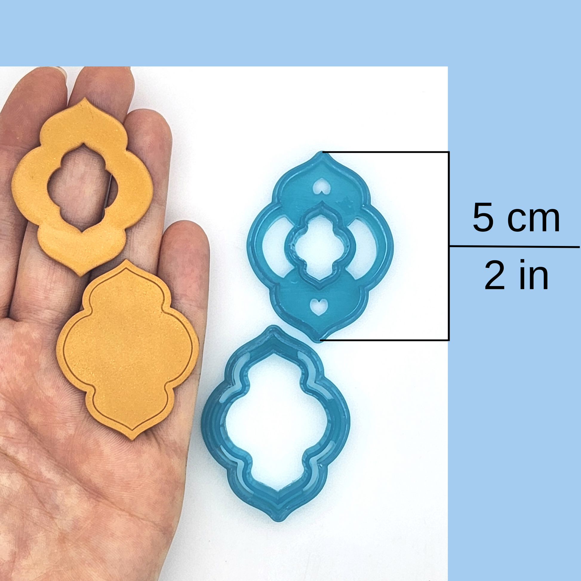 This Moroccan polymer clay cutter is available in two styles, Cutout and Frame Debossing cutters. It's also available in three sizes, 3 cm to 5 cm.