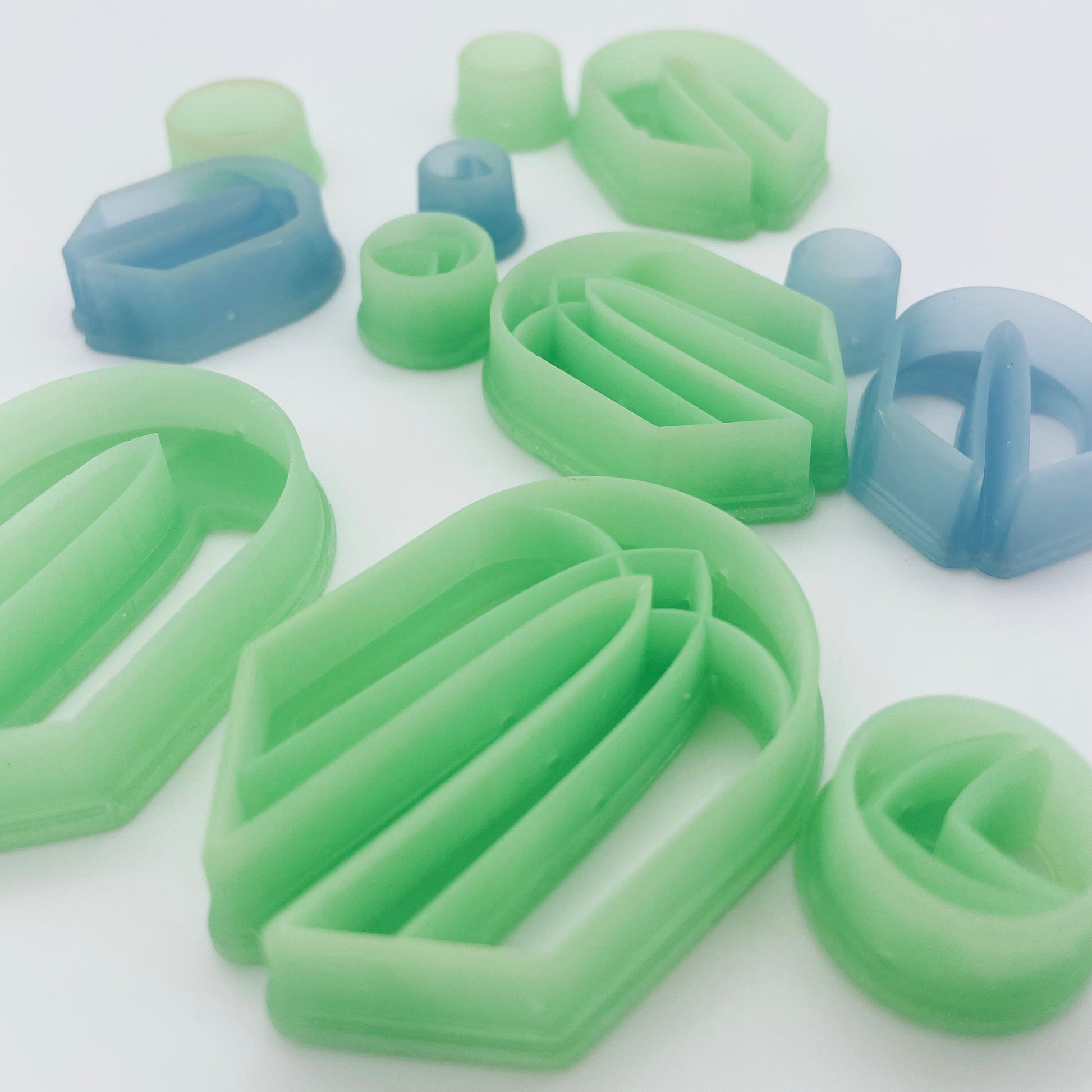 Our polymer clay cutters are printed with resin, meaning the individual lines from the printing process don't show at all so the edges of your clay pieces come out very smooth. Additionally, resin allows us to create a beveled cutting edge on the cutters so that they slice through the clay, pushing the excess clay out and away, rather than just smashing it down onto your cutting surface. You're left with crisp, clean edges often with little to no cleanup necessary.