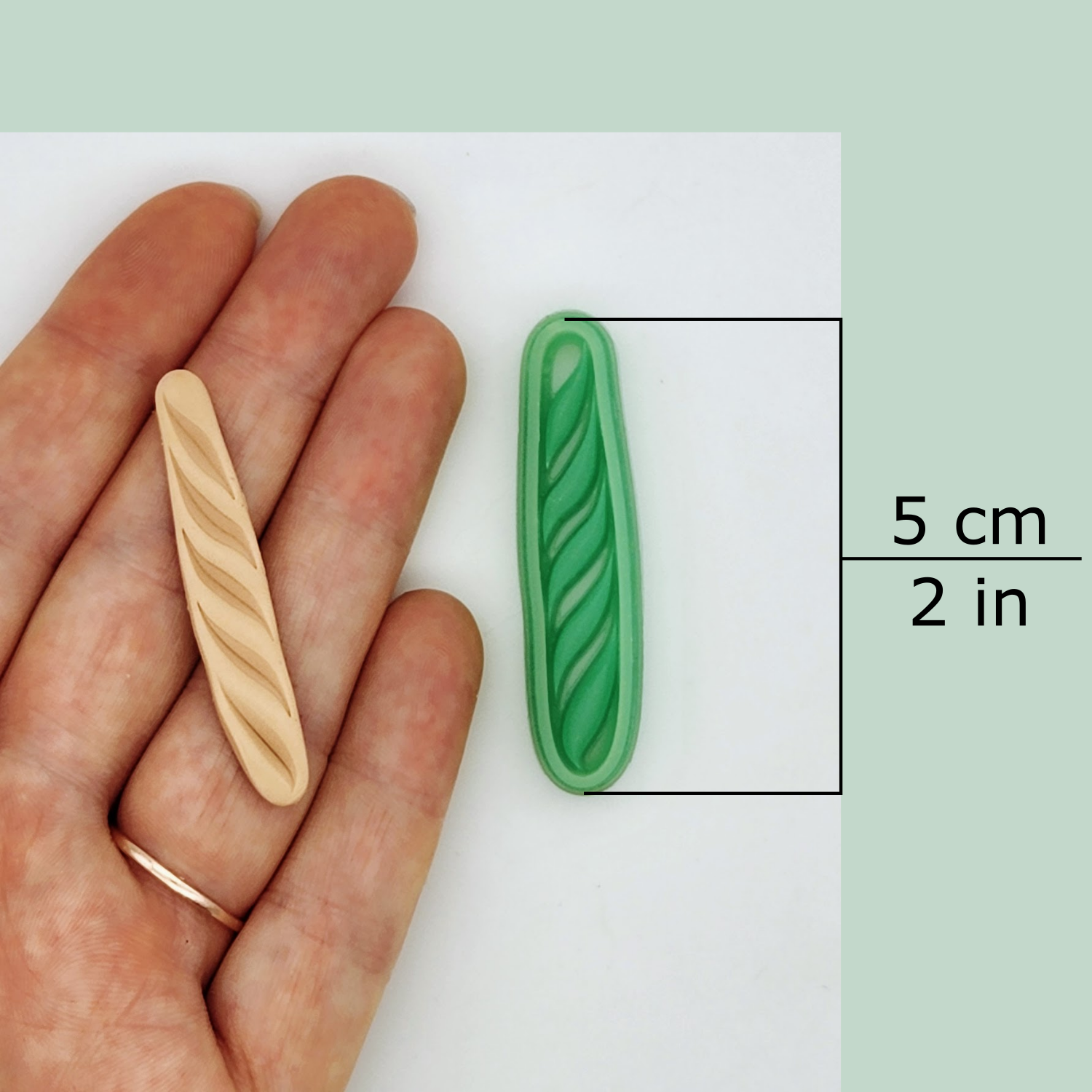 This Baguette polymer clay cutter comes in three sizes, 3 cm to 5 cm.