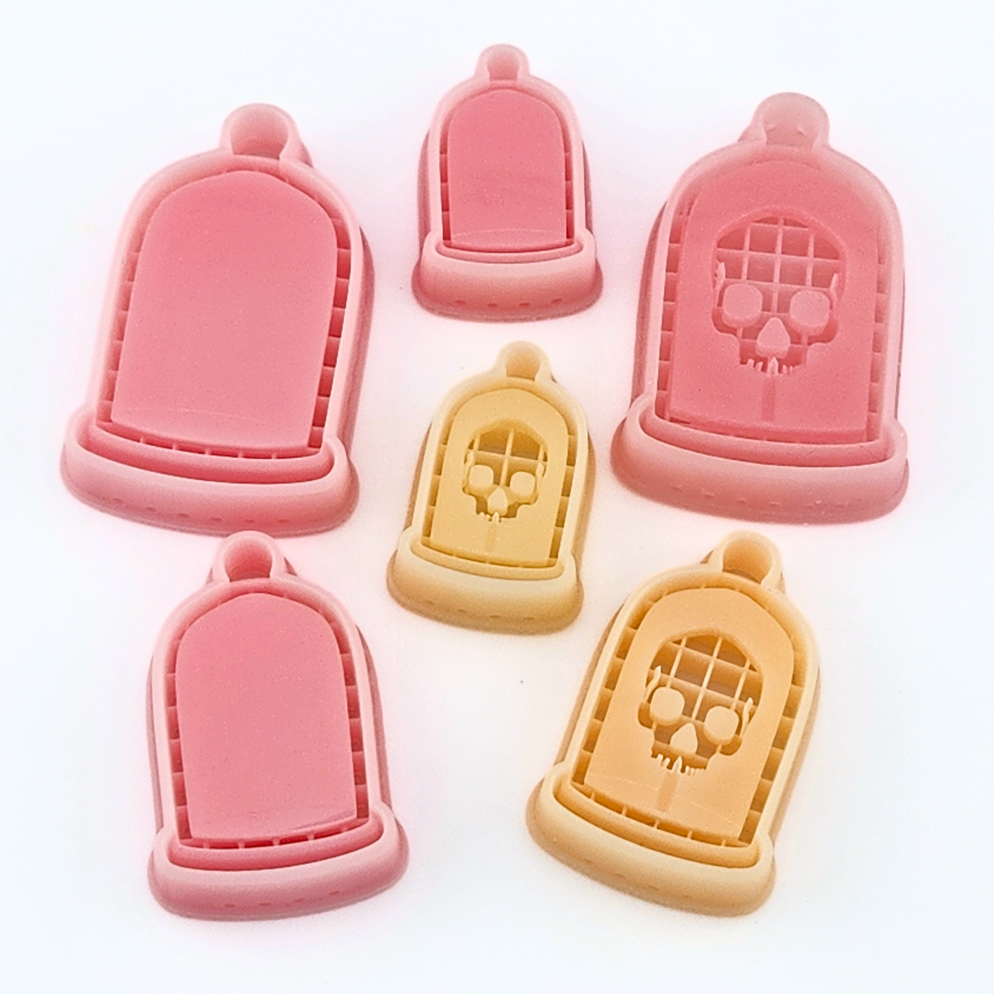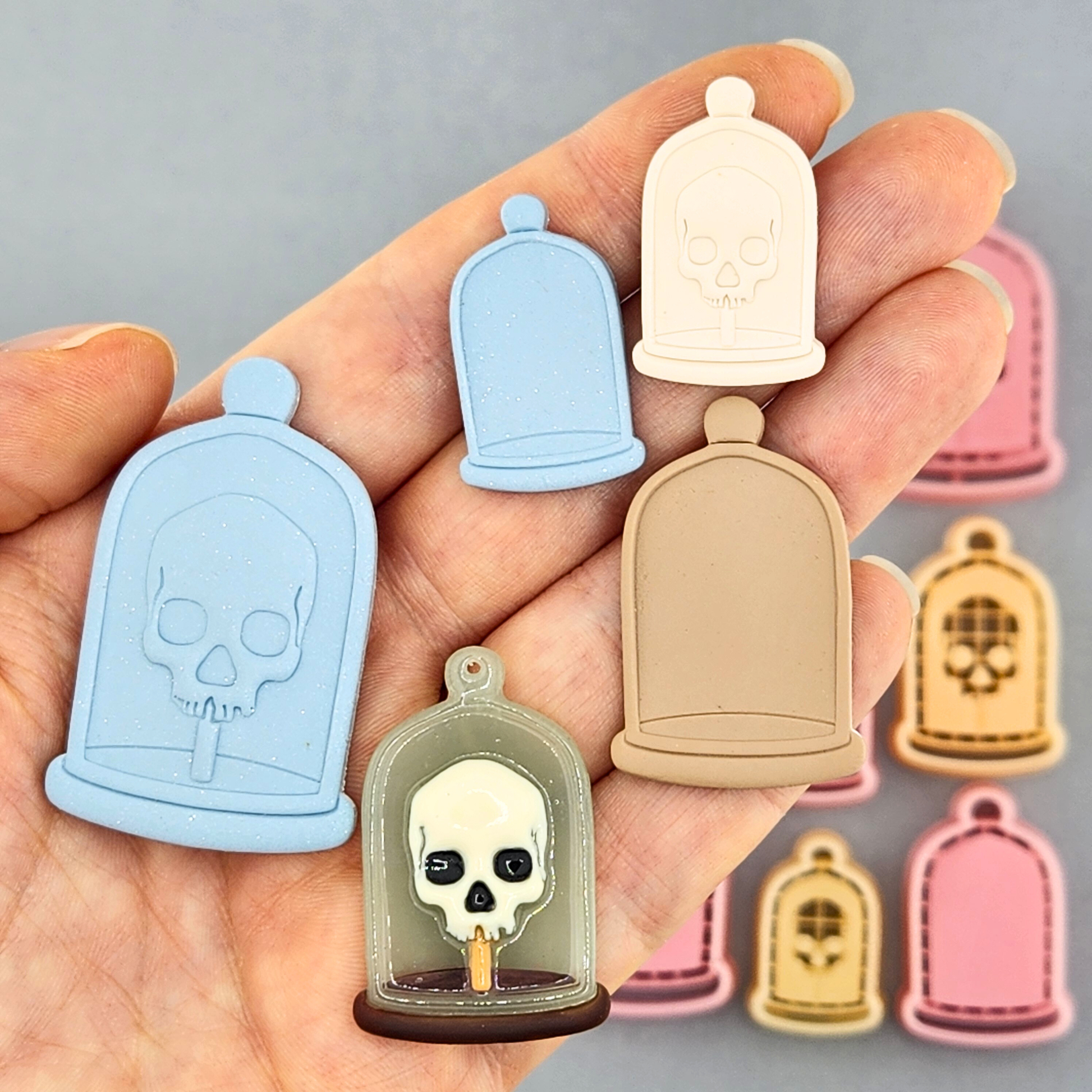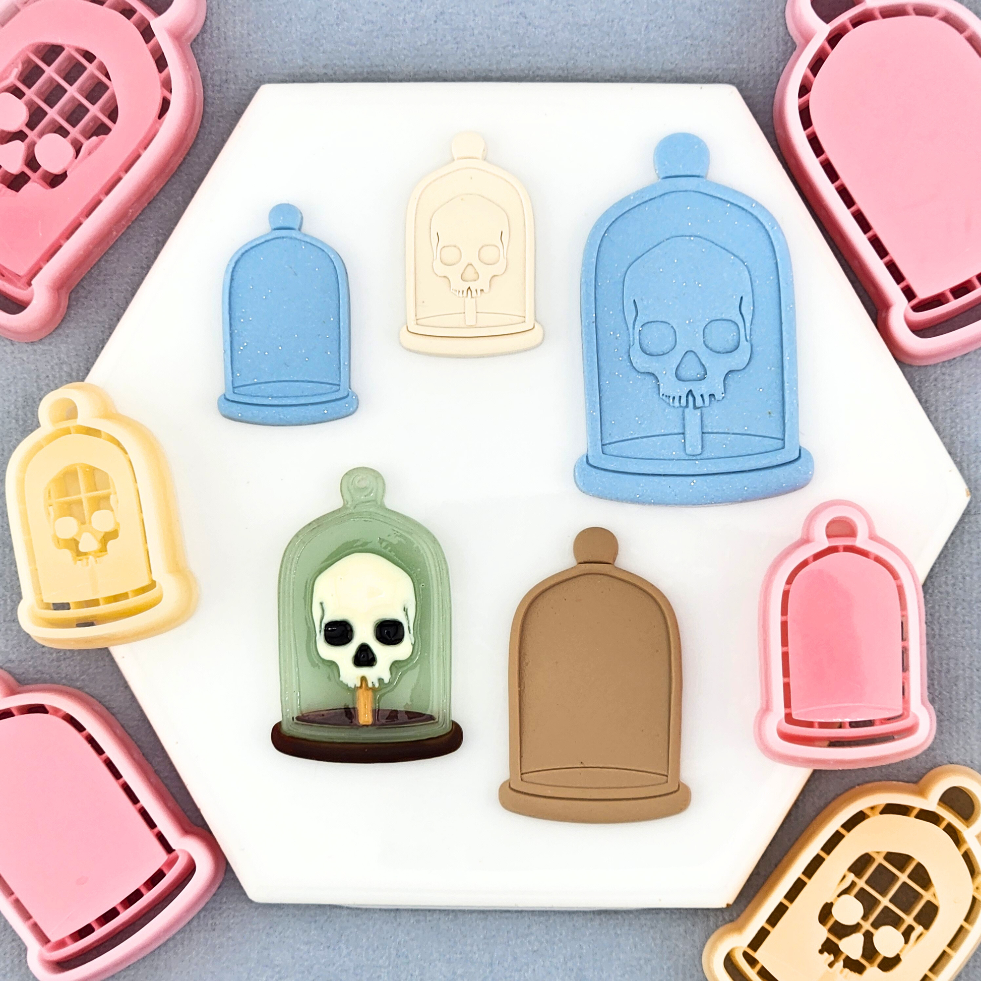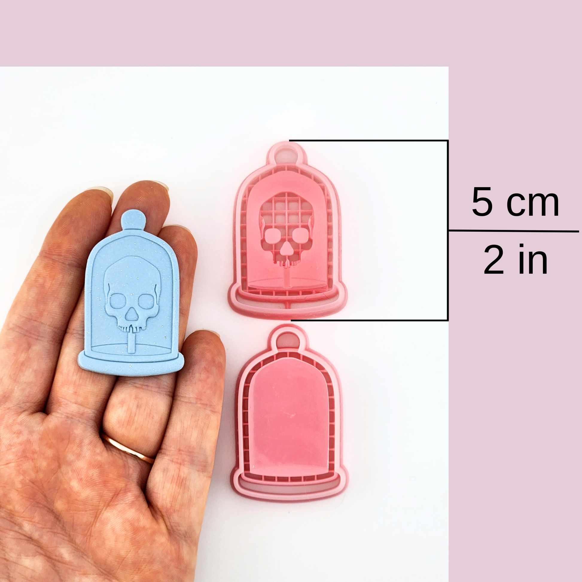 These bell jar polymer clay cutters are available in two styles, with or without the skull. Each style is also available in three sizes, 3 cm - 5 cm.Ā