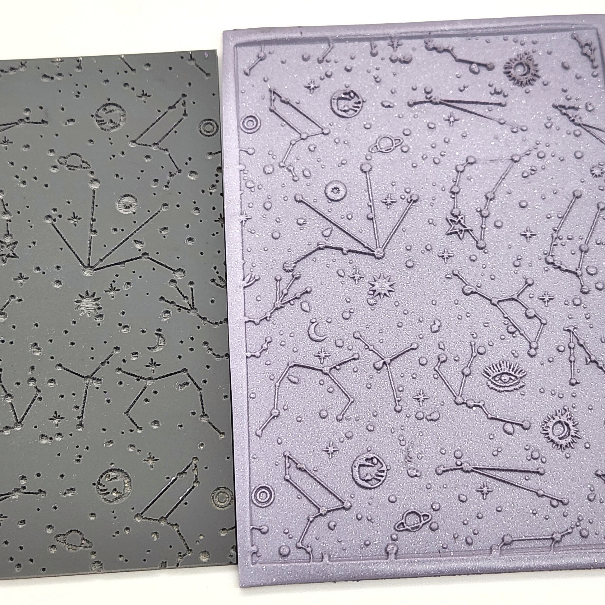 Rubber texture sheet with celestial constellation embossing details. (When pressed into clay, the pattern will appear to stand out.)