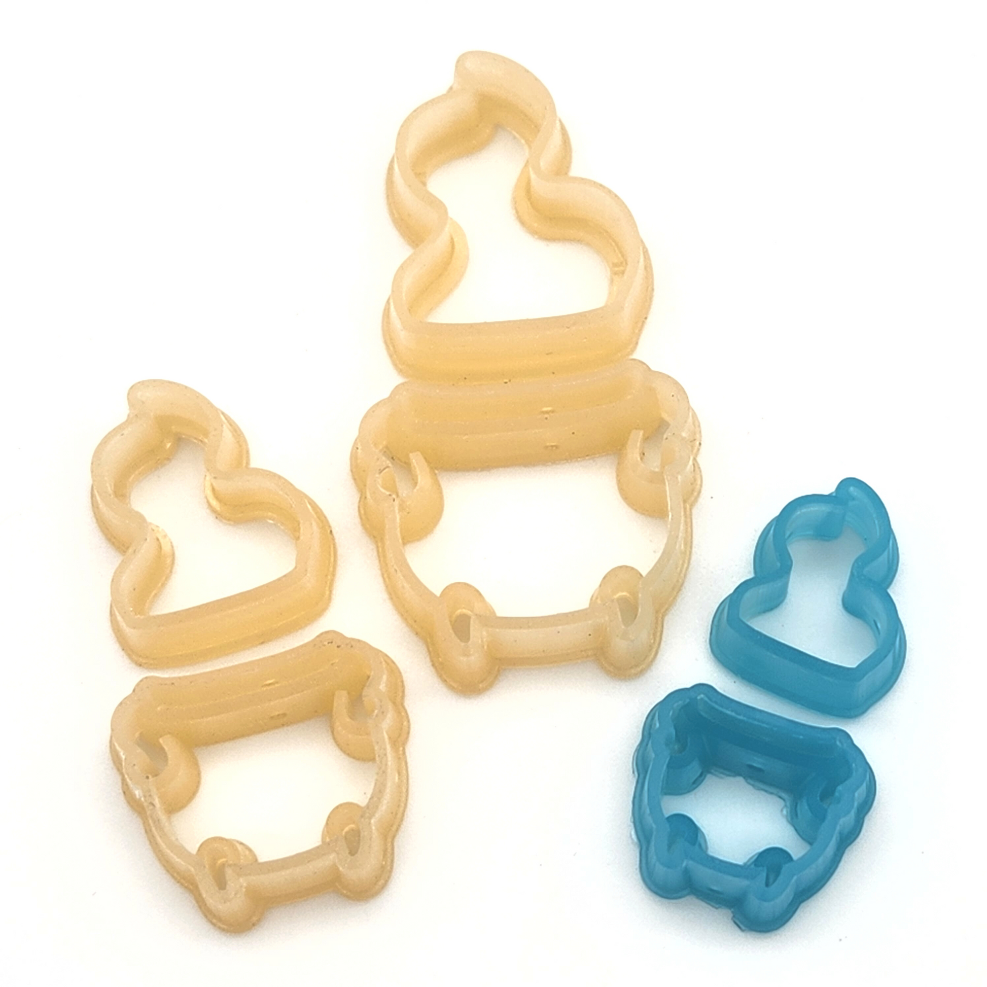 Our polymer clay cutters are printed with resin, meaning the individual lines from the printing process don't show at all so the edges of your clay pieces come out very smooth. Additionally, resin allows us to create a beveled cutting edge on the cutters so that they slice through the clay, pushing the excess clay out and away, rather than just smashing it down onto your cutting surface. You're left with crisp, clean edges often with little to no cleanup or sanding necessary.