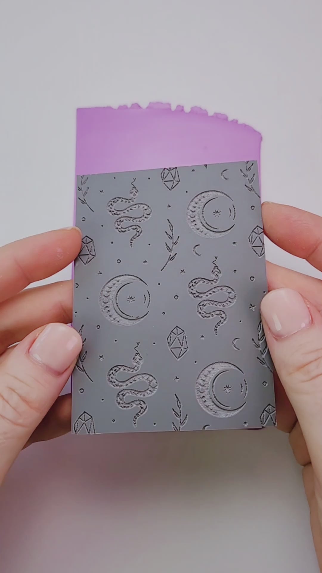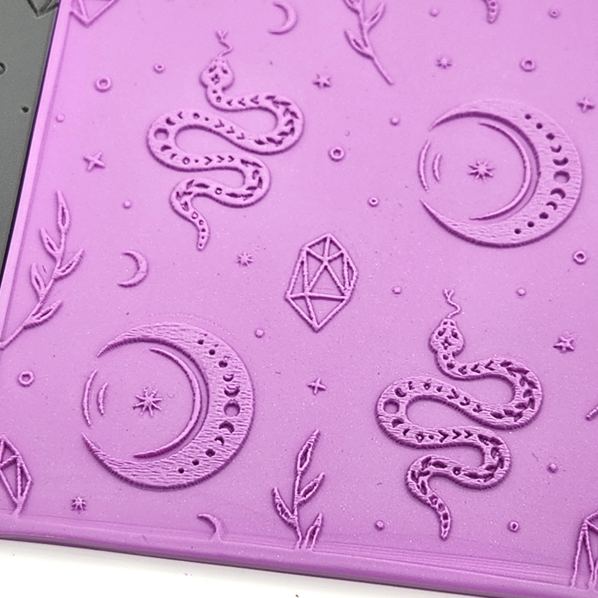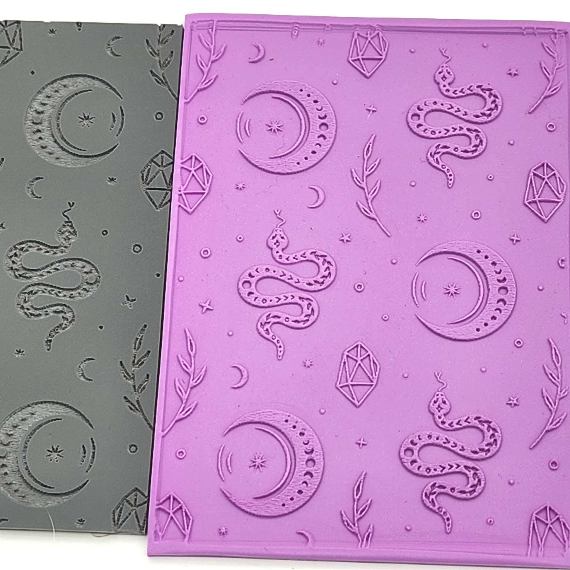 Rubber texture sheet with snake and moon embossing details. (When pressed into clay, the pattern will appear to stand out.)