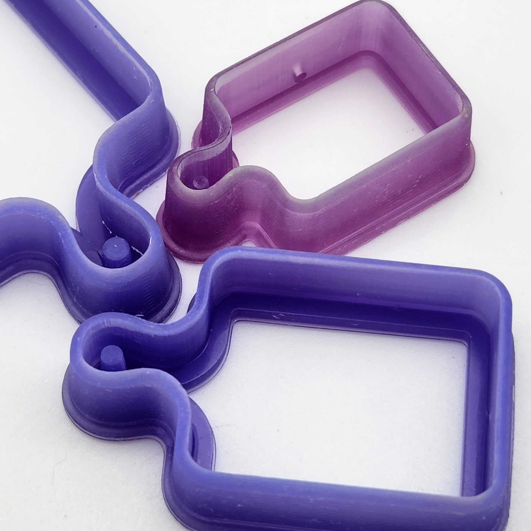 Our polymer clay cutters are printed with resin, meaning the individual lines from the printing process don't show at all so the edges of your clay pieces come out very smooth. Additionally, resin allows us to create a beveled cutting edge on the cutters so that they slice through the clay, pushing the excess clay out and away, rather than just smashing it down onto your cutting surface. You're left with crisp, clean edges often with little to no cleanup or sanding necessary.
