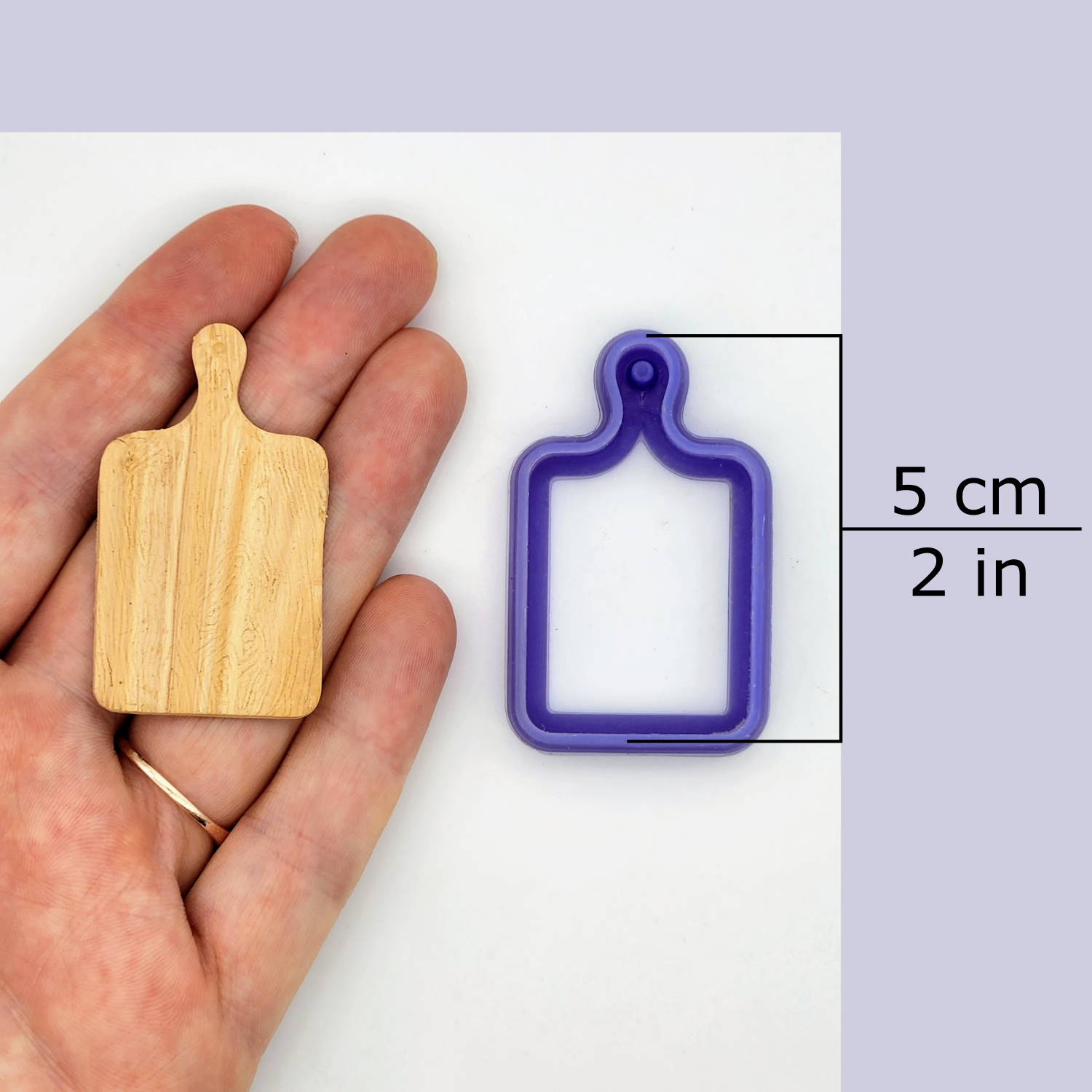 This Charcuterie or cutting board polymer clay cutter comes in three sizes, 3 cm to 5 cm. The listed sizes are the length of the longest side of the cutter.