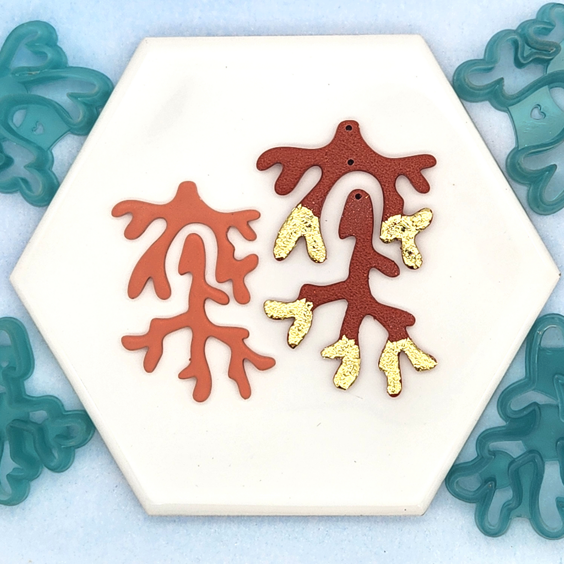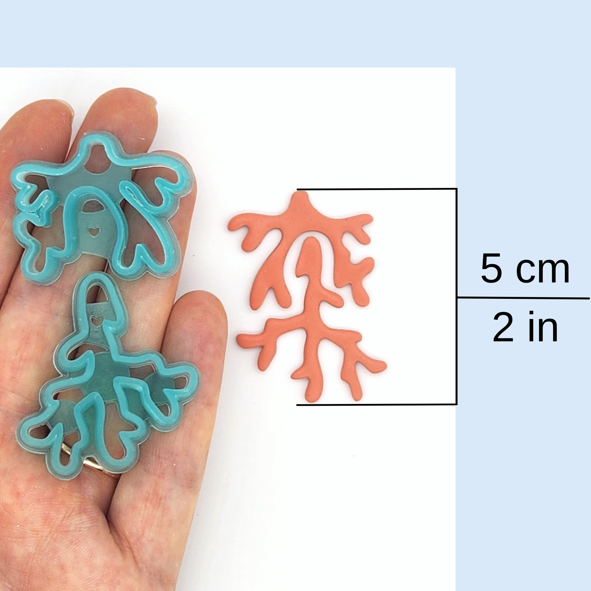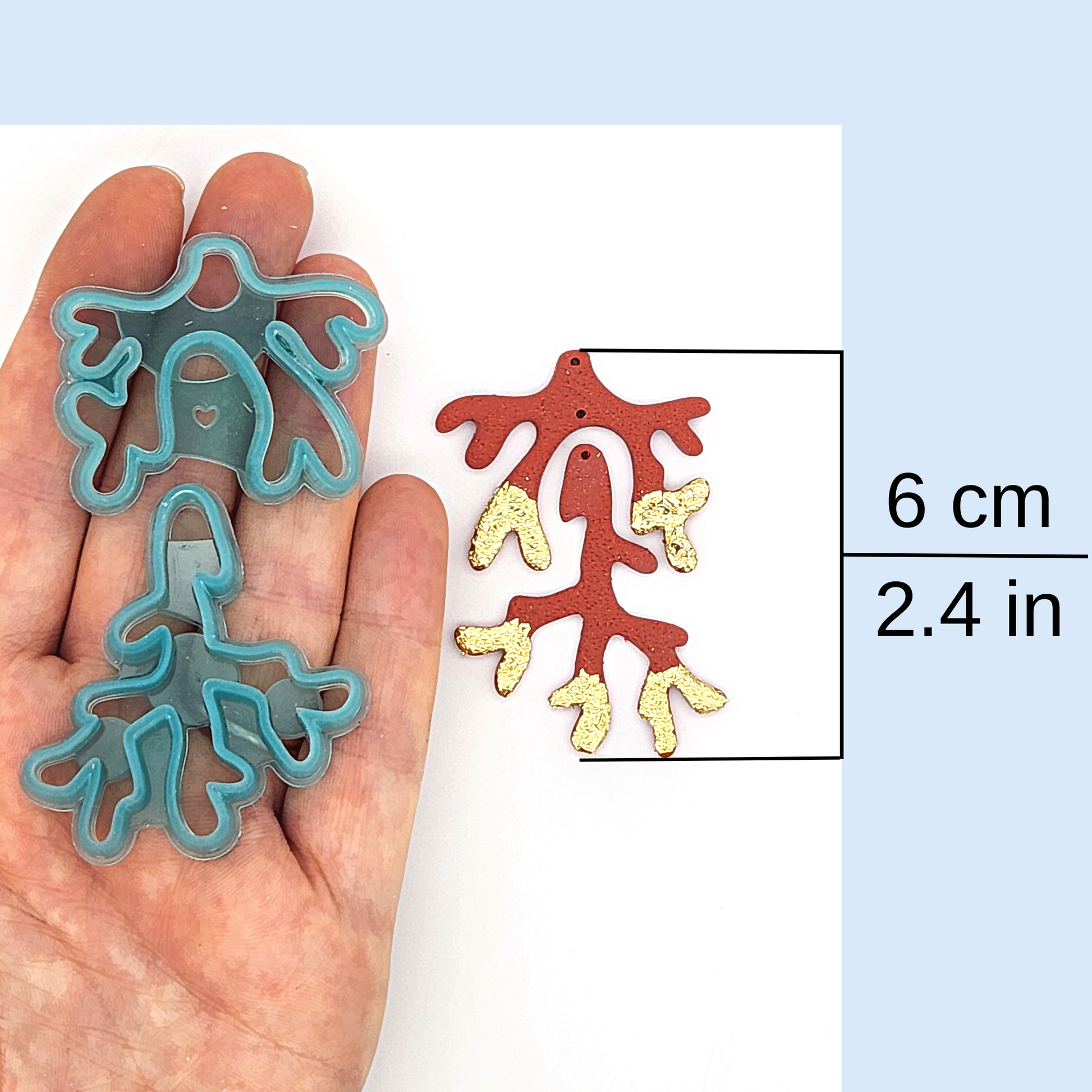 This coral dangle polymer clay cutter set is available in two sizes, 5 cm and 6 cm. Dimensions are the approximate height of the two coral pieces assembled together.