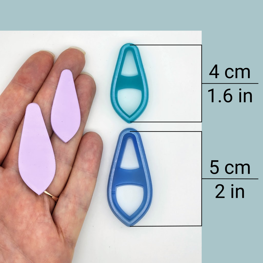 There are four sizes of these teardrop outline polymer clay cutters available, 2 cm to 5 cm.