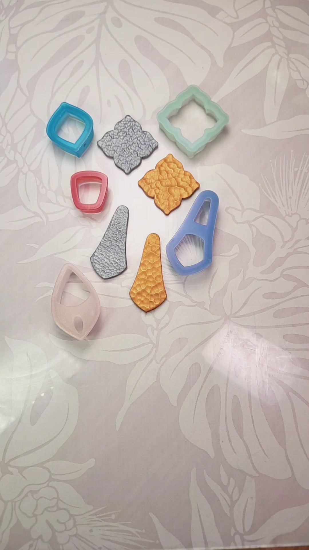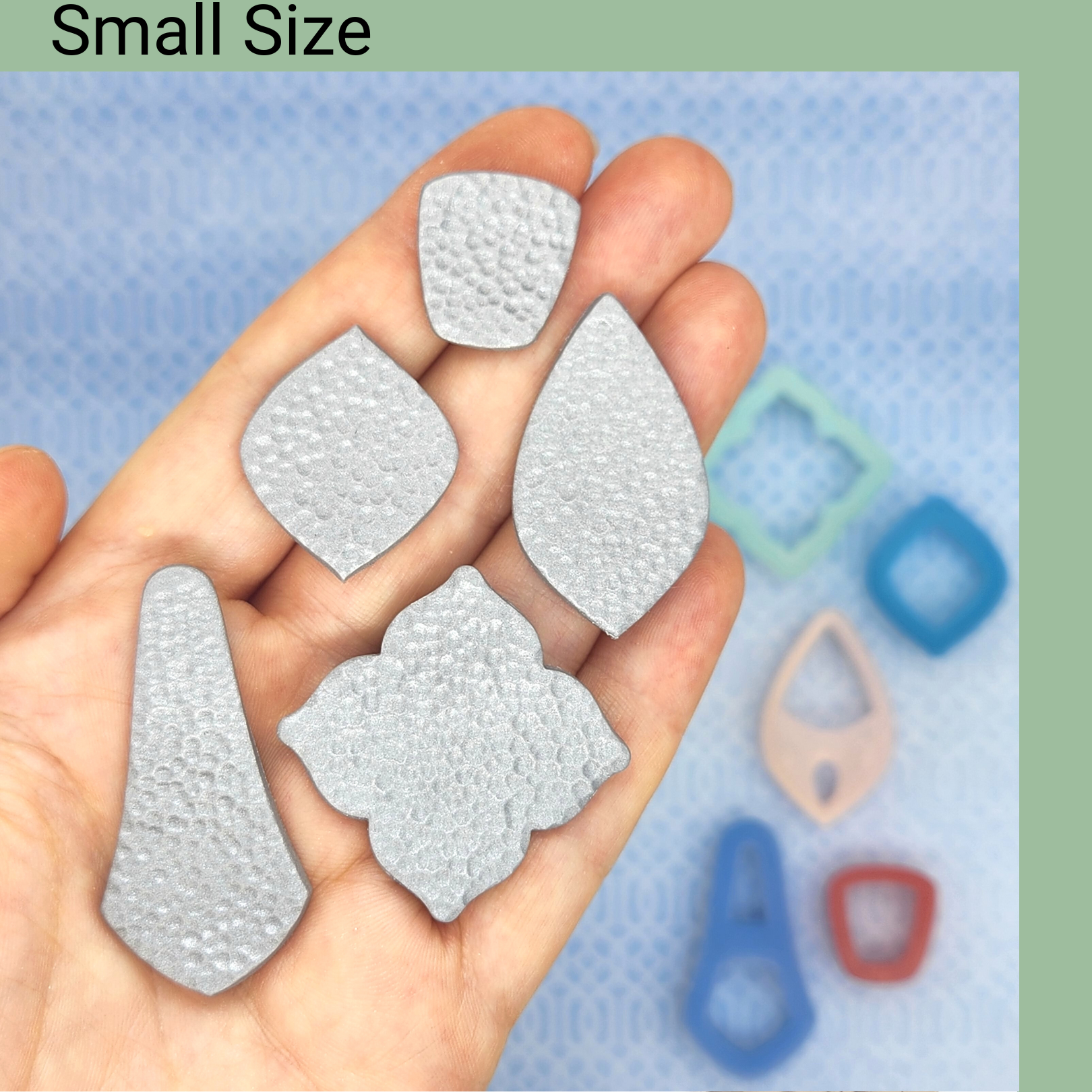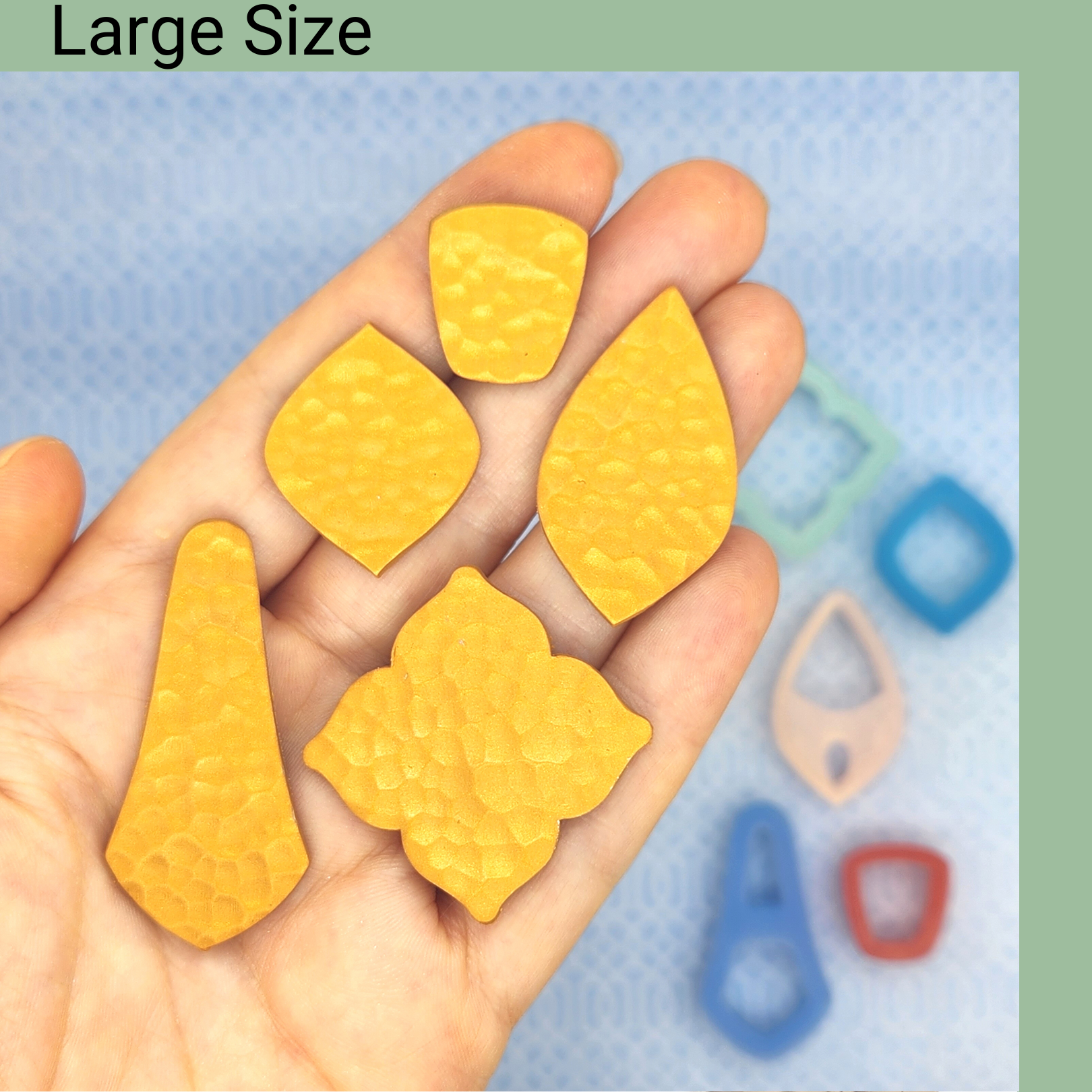 Seen here with the 5 cm Antique Teardrop cutter, 4 cm Aziza outline cutter, 4 cm Eve Teardrop outline cutter, 3 cm Miya outline cutter, and the 2 cm Brandy outline cutter.Ā