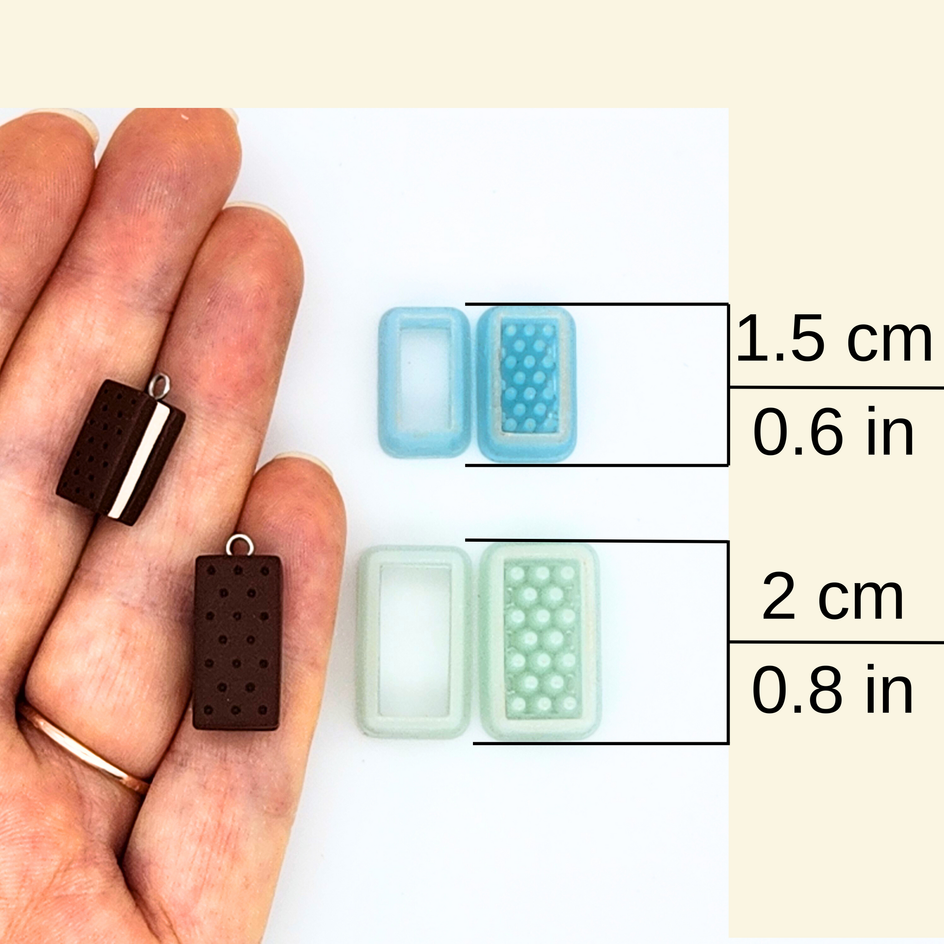 This set of polymer clay cutters can be used to create little 3D ice cream sandwiches. The set includes two cutters, a cookie and an ice cream cutter. Each set is available in four sizes, 1.5 cm to 4 cm.
