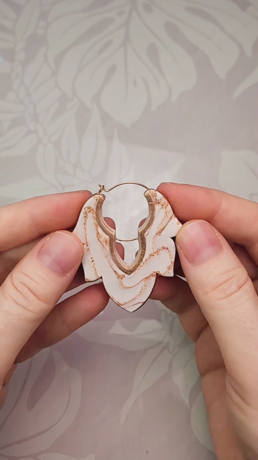 - Add liquid clay or oven-bake adhesive to the edges and bake again. Make sure to add enough to fill any gaps so the edges will look nice and smooth. Colored liquid clay will completely hide the seam. Translucent liquid clay will cure almost clear, and you'll still be able to see the seam. If you use liquid clay, it may be best to bake the earrings while hanging so the liquid clay doesn't pool at the back of the earrings where they meet the baking surface. I personally used a mix of oven-bake adhesive and translucent liquid clay for a slightly thicker application. I then covered that with gold paint for an elegant, finished look.