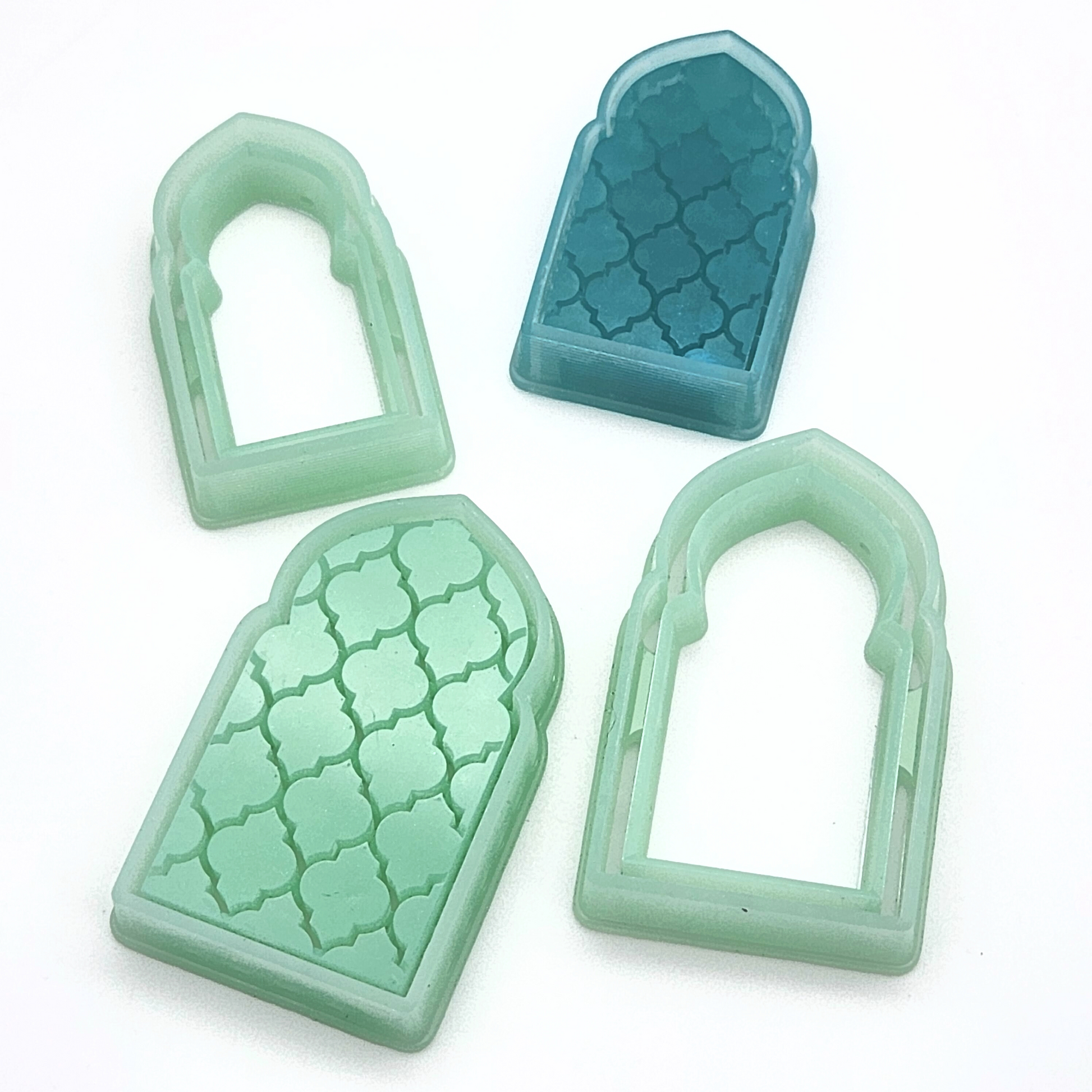This Moroccan arch polymer clay cutter comes in two sizes, 4 cm and 5 cm. It's also available in two styles, Simple Frame and Detailed Debossing cutters.