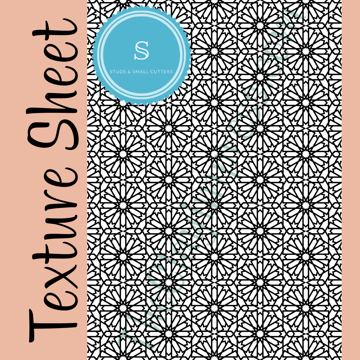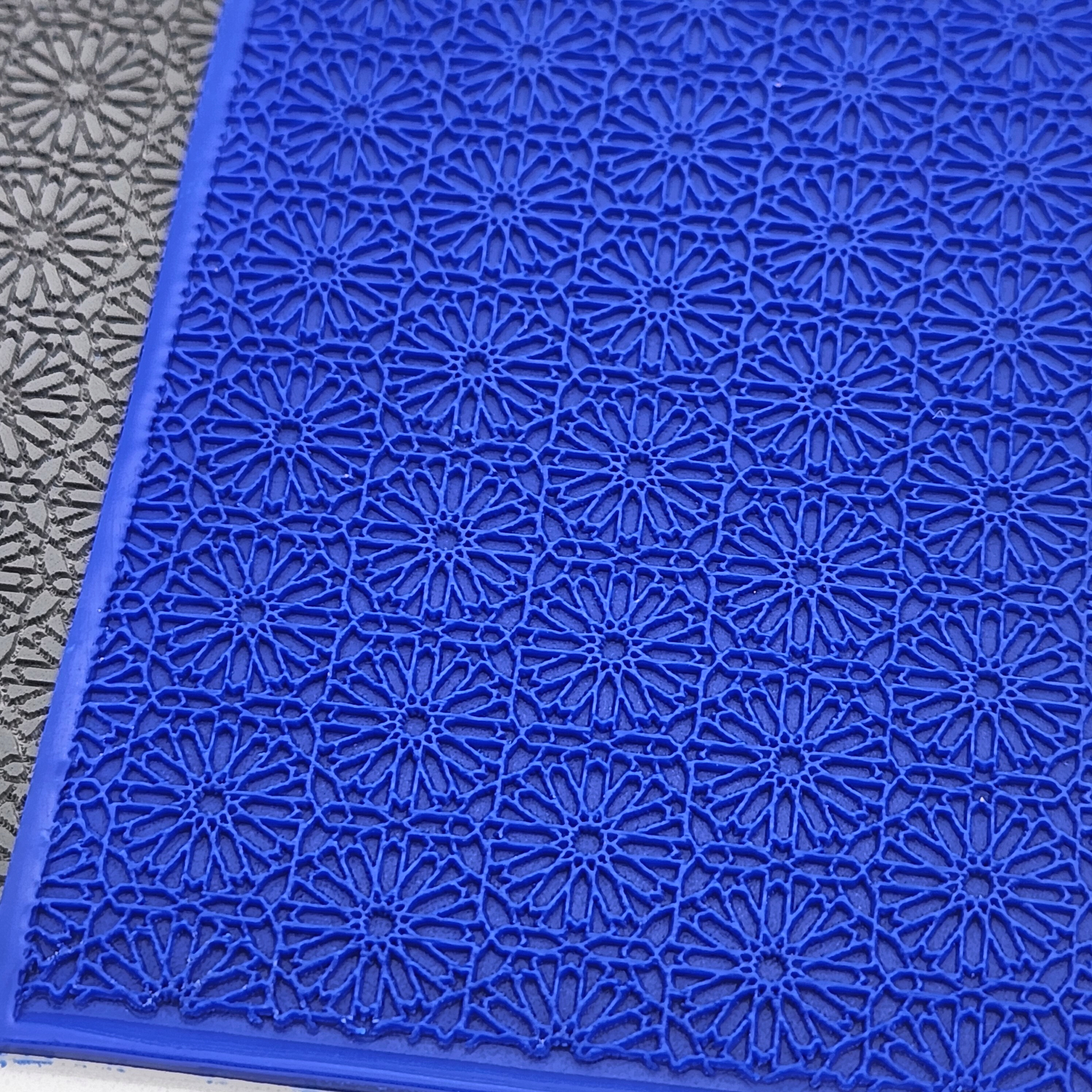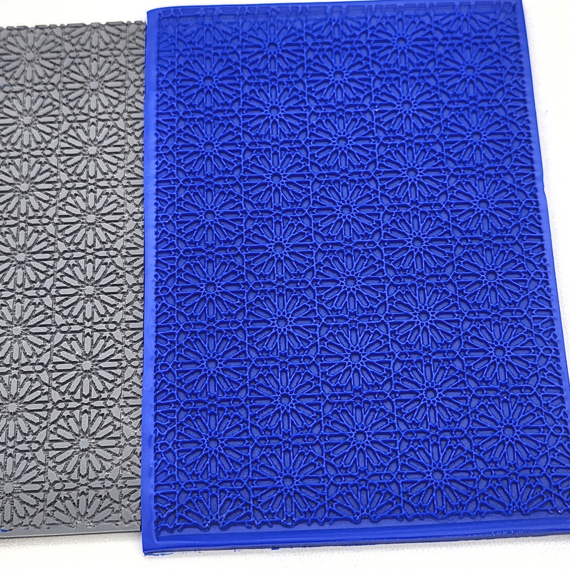 Rubber texture sheet with geometric Moroccan embossing details. (When pressed into clay, the pattern will appear to stand out.)Ā