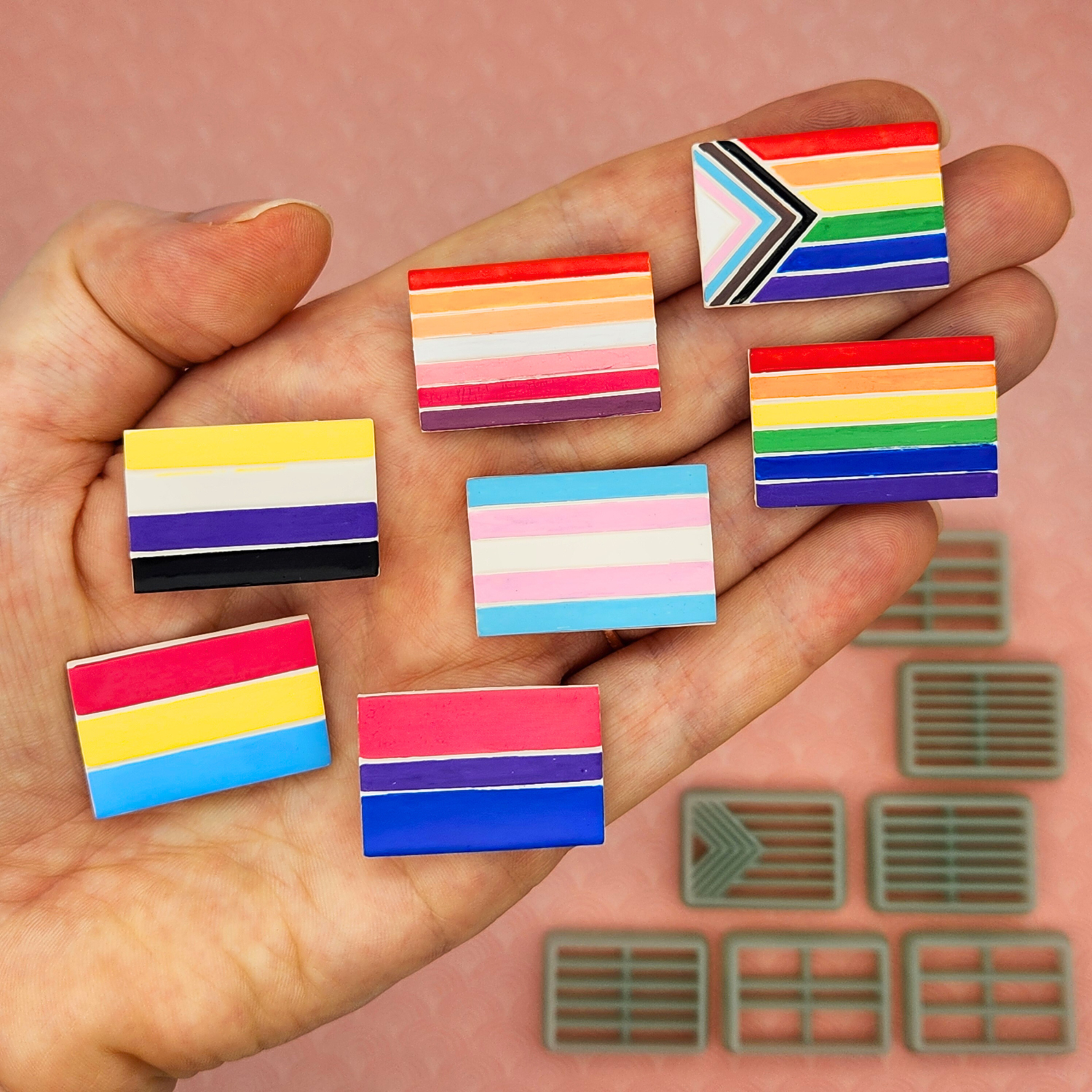 - Multi-Flag Use: Many of the striped flag designs are interchangeable, allowing you to represent multiple identities with a single cutter. For instance, the "Lesbian" cutter can also create the Gay Men's Pride flag, and the "Pansexual" cutter is suitable for Polysexual or Genderqueer flags.