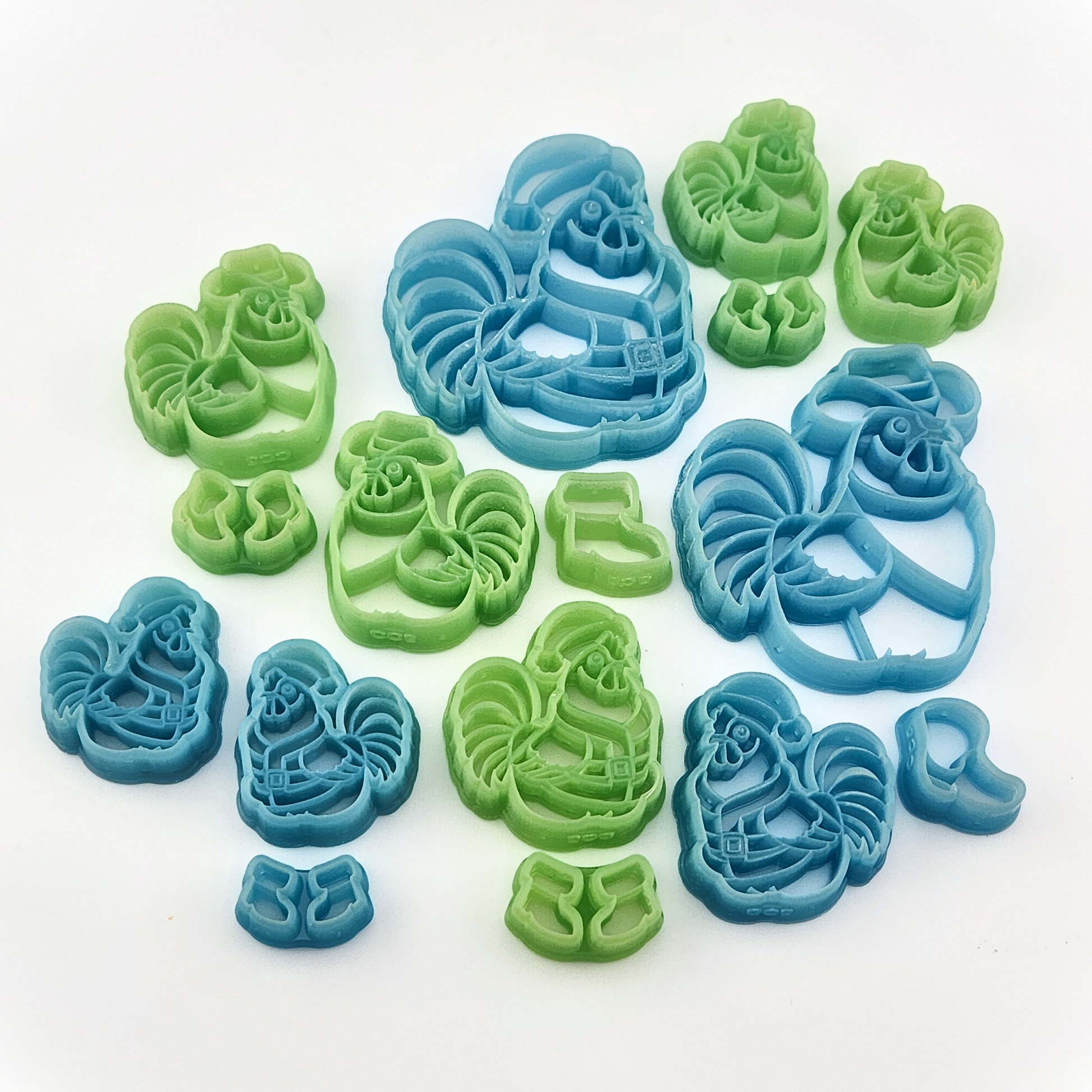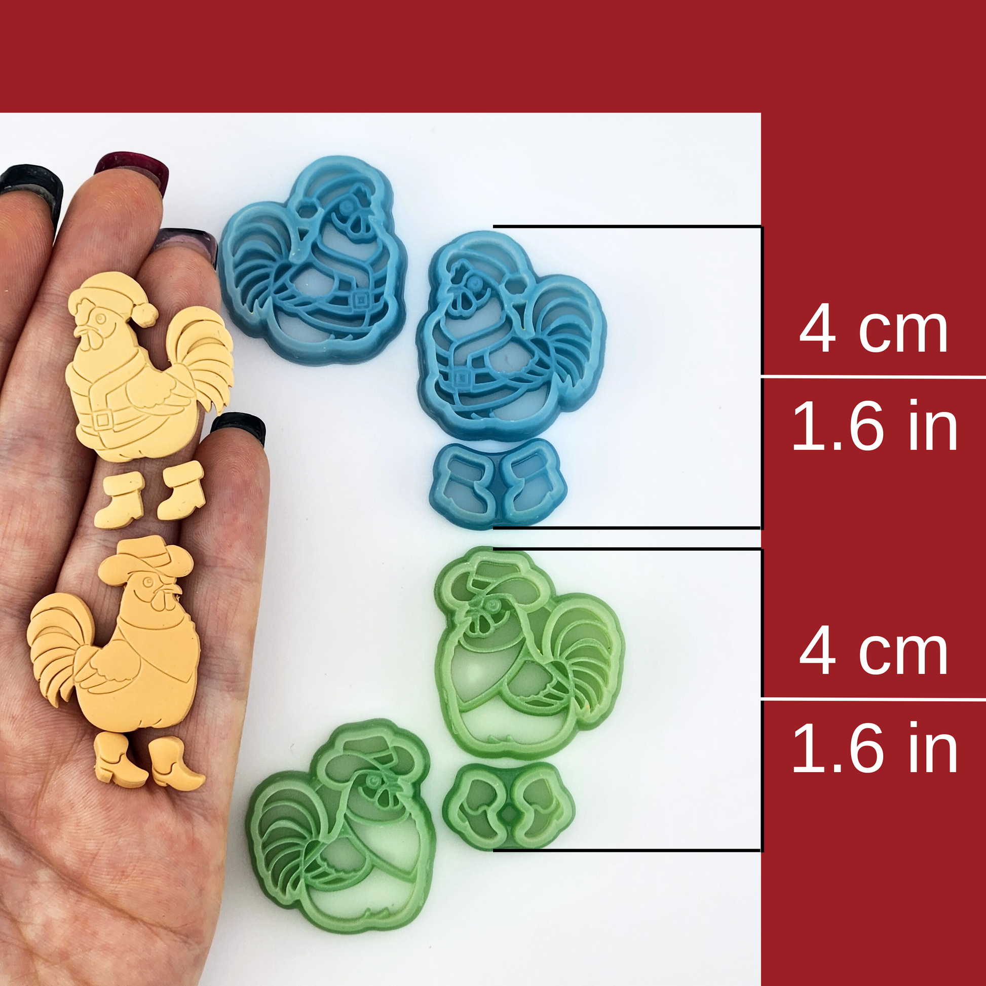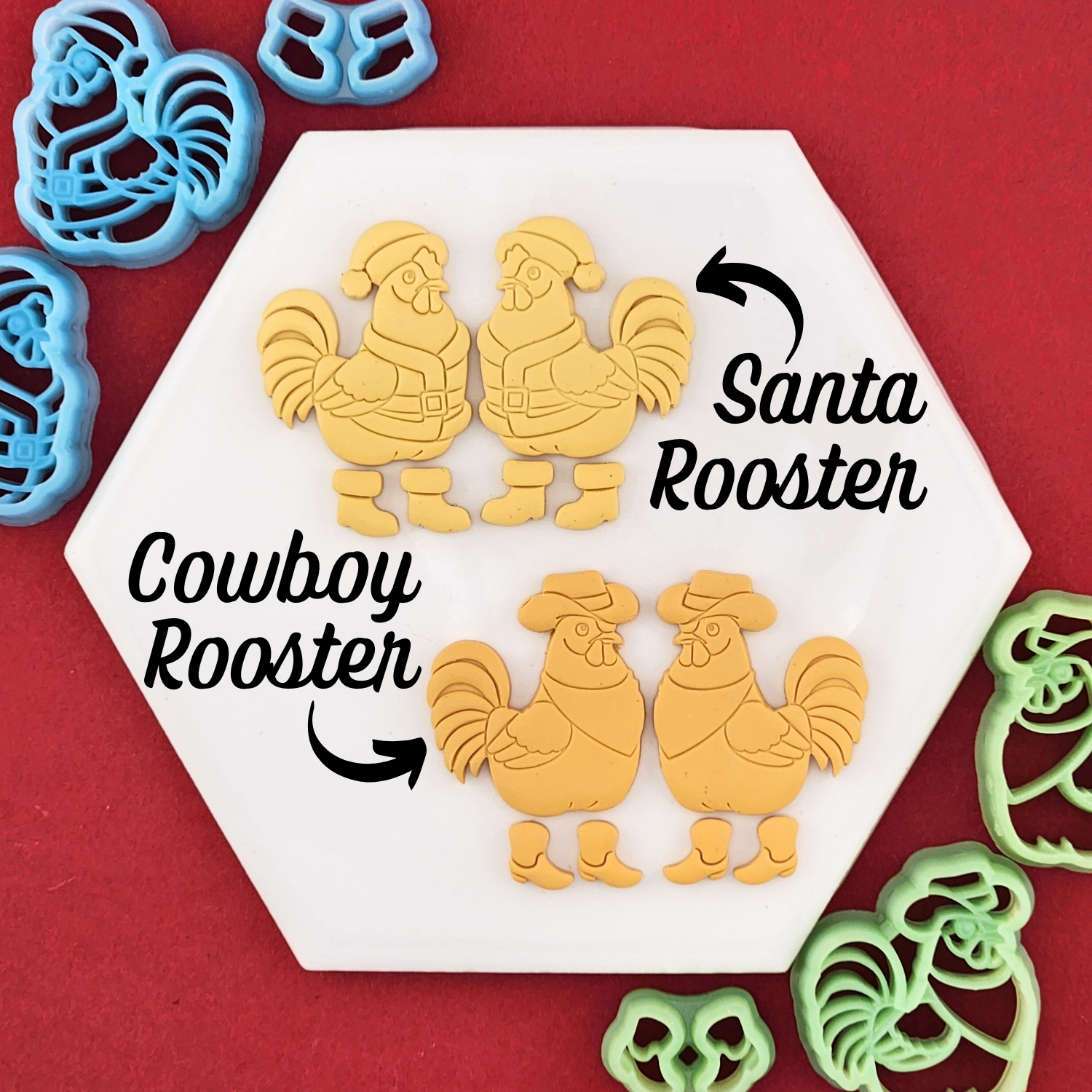 Rooster in Boots Polymer Clay Cutter Sets - Santa & Cowboy Styles