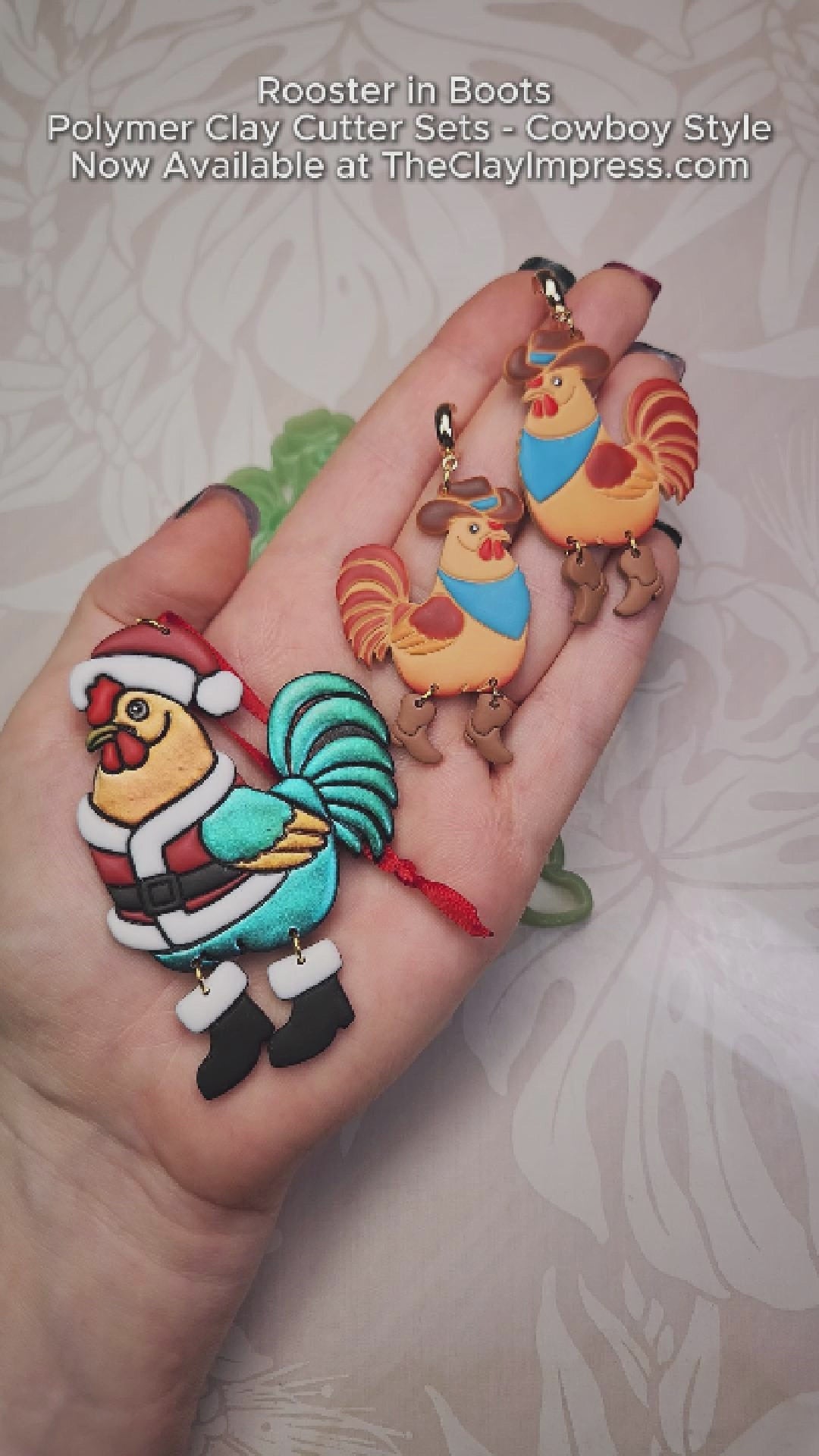 Add some fun and festive flair to your creations with our Rooster in Boots Polymer Clay Cutter Set, available in three sizes and two styles: Santa or Cowboy!