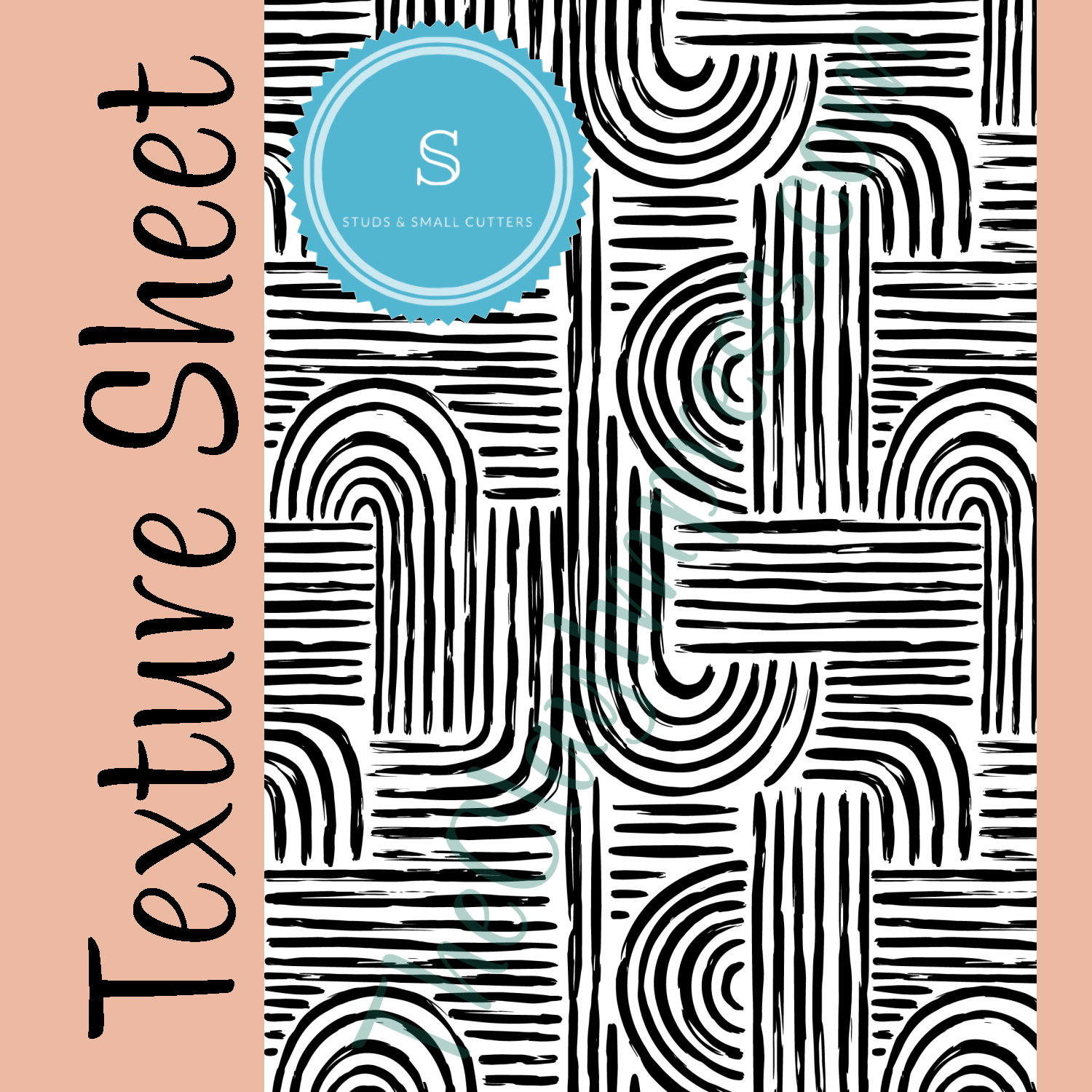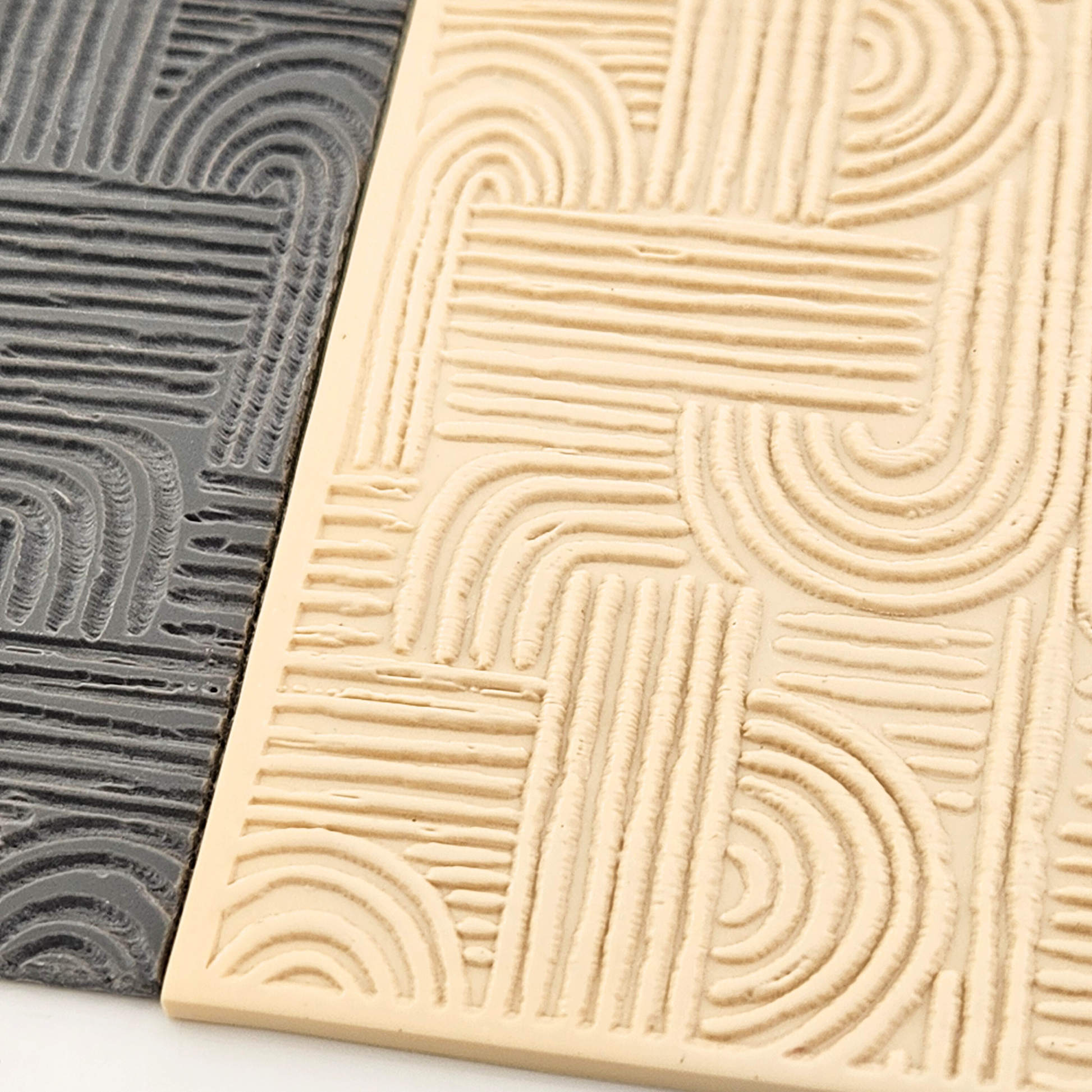 Rubber texture sheet with abstract arches and lines embossing details. (When pressed into clay, the pattern will appear to stand out.)
